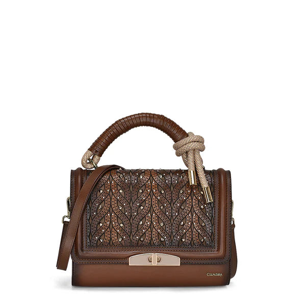 Brown Laser & Woven & Swarovsky Purse