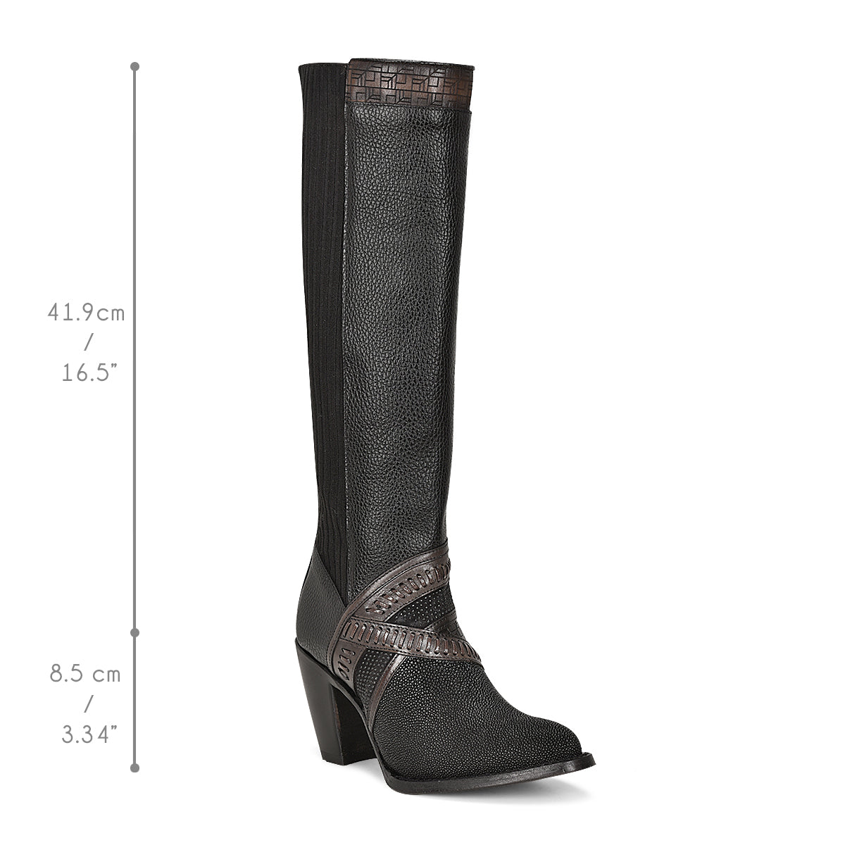 These Cuadra boots are expertly crafted from genuine black stingray leather, featuring a distinctive natural texture and rich, refined sheen that deliver bold, exotic style. Designed with premium handcrafted quality and a classic silhouette, they offer versatile wearability and elevated character that enhances both everyday and dressier looks.