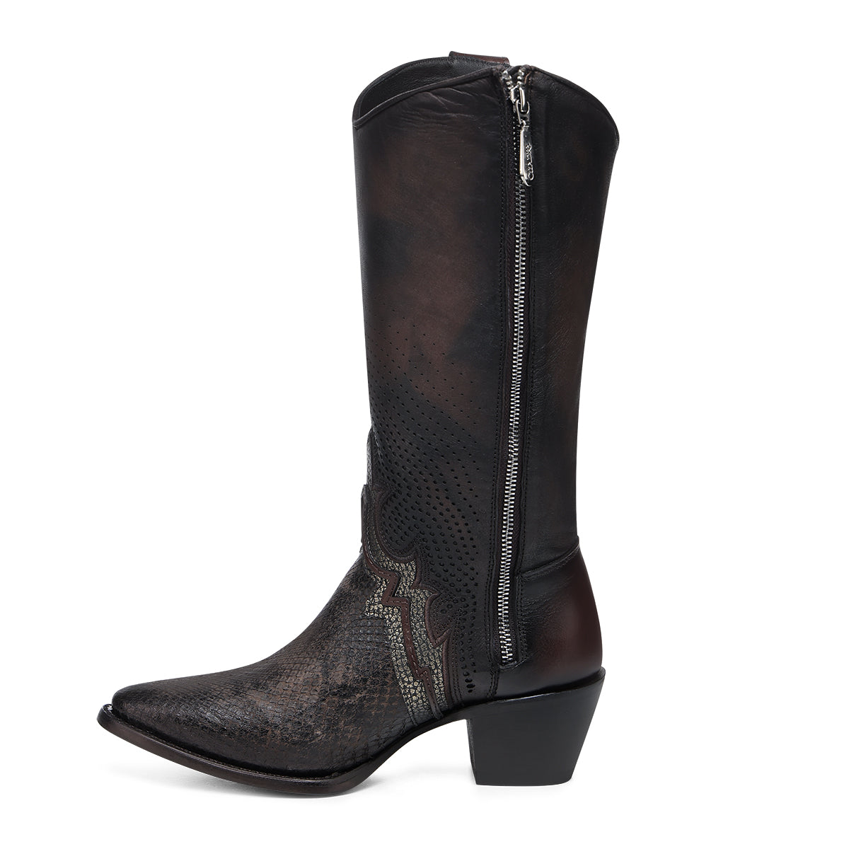 This women’s chocolate python leather boot features rich exotic texture and premium Cuadra craftsmanship. Designed with a refined Western-inspired silhouette, it combines distinctive natural python patterning with durable construction for standout everyday wear or elevated outfits.